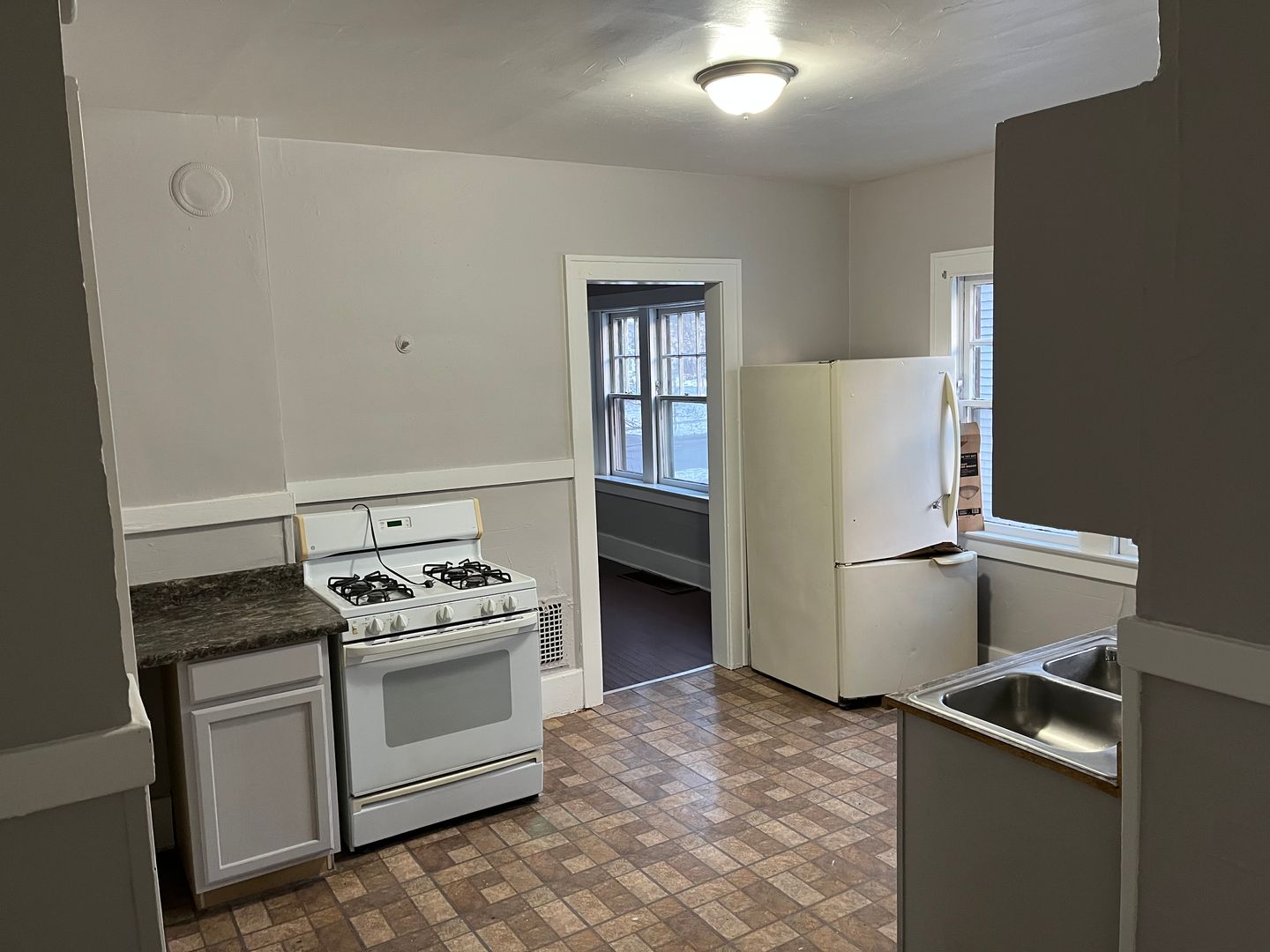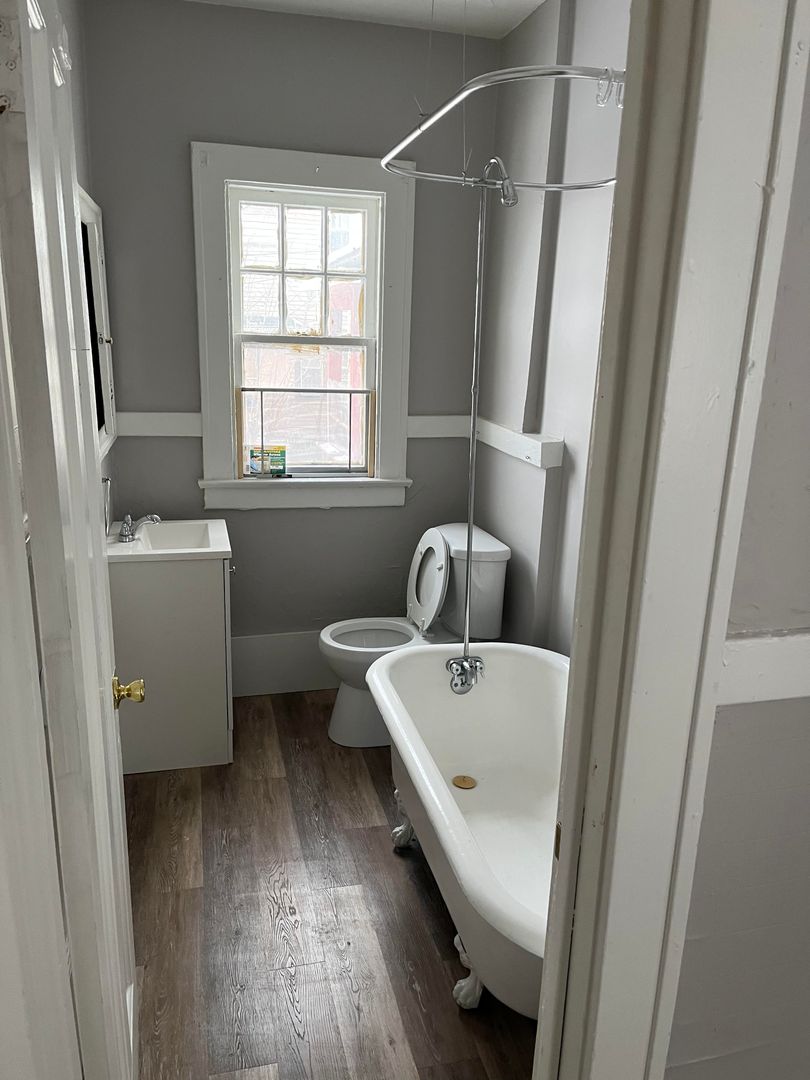The floors are painted hardwood. No appliances are included.. Apartment recently redone!